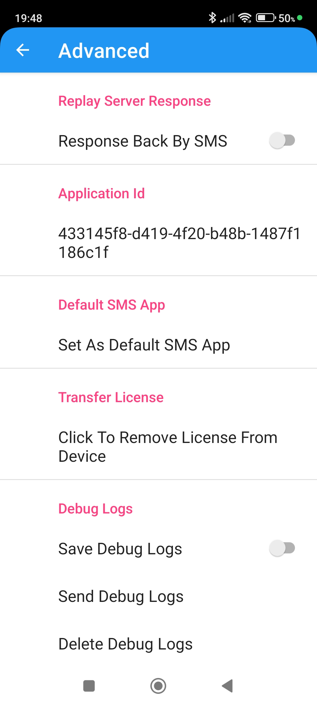 Behavior: When enabled, after receiving the endpoint response (body), the app will send an SMS message back to the from number containing the response from the endpoint.